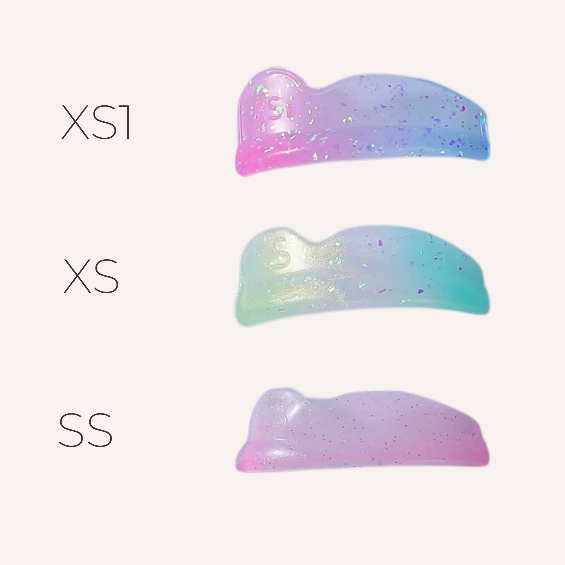 Velg størrelse basert på vippelengde og ønsket resultat. Plasser skjoldet tett mot vippekanten og fest vippene etter valgt teknikk.