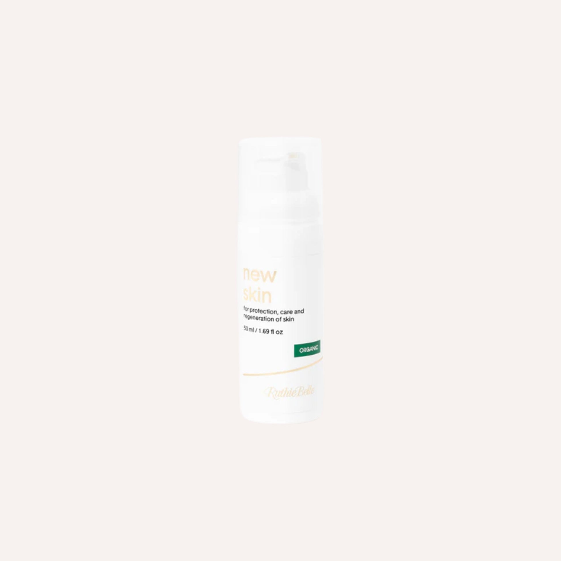 New Skin er formulert med naturlige oljer og kalduttrukne planteekstrakter med aktive egenskaper. Produktet er ufiltrert for å bevare sin naturlige sammensetning, og synlige partikler er et bevis på det rene og naturlige innholdet.